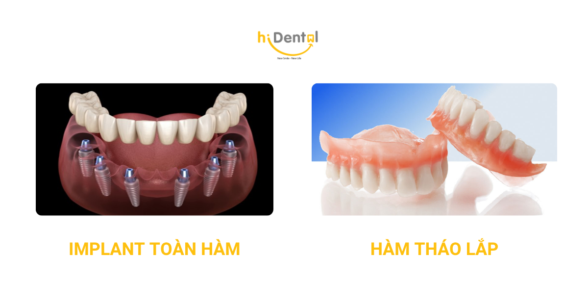 Mất răng toàn hàm là tình trạng không hiếm gặp ở người trung niên và cao tuổi. Khi gặp tình trạng này, nhiều người băn khoăn không biết nên chọn trồng răng Implant toàn hàm hay sử dụng hàm tháo lắp truyền thống để phục hình. Phương án nào tiết kiệm chi phí? Phương án nào mang lại hiệu quả lâu dài, ăn nhai thoải mái và thẩm mỹ tự nhiên? Cùng bác sĩ tại hiDental – nha khoa chuyên sâu Implant TP.HCM – so sánh chi tiết để giúp bạn có quyết định sáng suốt.